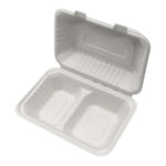 9*6*3 2 Compartment Bagasse Clamshell Containers, 250/Case